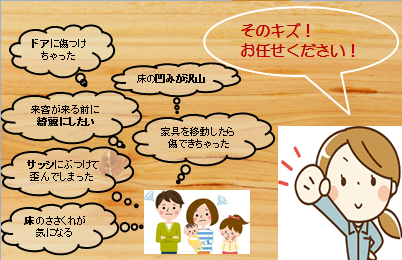 キズでお困りでしたら、ウッド・リワークの補修を是非ご利用下さい。